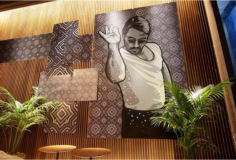 Σύμφωνα με την ομοσπονδιακή αγωγή που κατατέθηκε στο Μανχάταν την περασμένη Δευτέρα, το έργο δημιουργήθηκε για το Steakhouse του Salt Bae στο Μαϊάμι ενώ άλλες τοιχογραφίες αντιγράφηκαν και βρίσκονται στα εστιατόρια του στη Ντόχα, στο Ντουμπάι και στη Νέα Υόρκη.