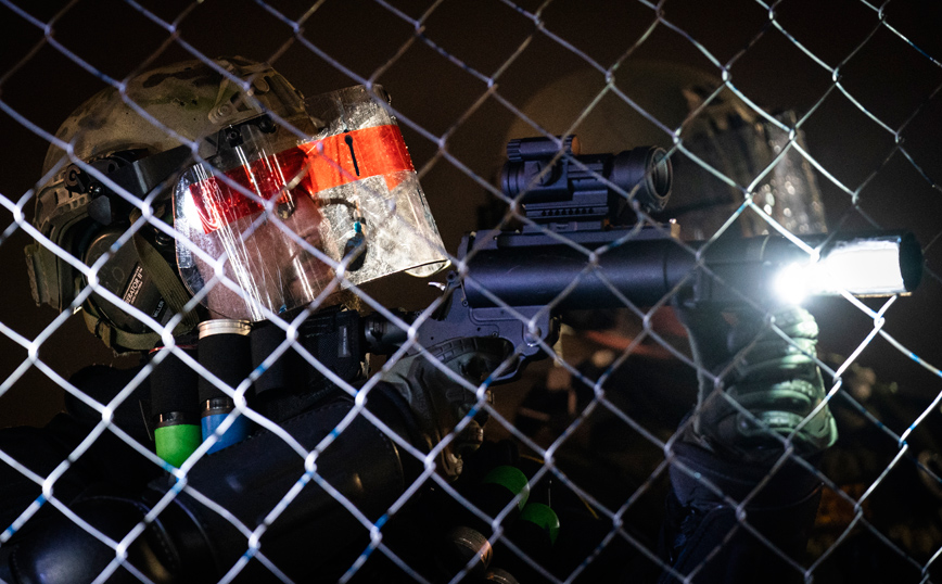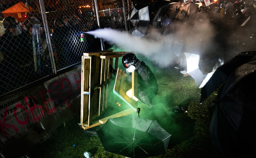 Ωστόσο ομάδες διαδηλωτές επιτέθηκαν λεκτικά εναντίον των αστυνομικών που είχαν σχηματίσει αλυσίδα μπροστά από το κτίριο, ενώ πέταξαν και αντικείμενα. Οι αστυνομικοί απάντησαν κάνοντας χρήση σπρέι πιπεριού.