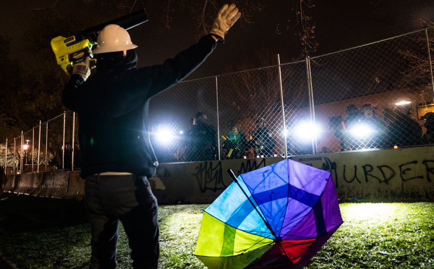 Όταν τέθηκε σε ισχύ η απαγόρευση κυκλοφορίας, αστυνομικοί με τη συνδρομή της Εθνοφρουράς διέλυσαν το πλήθος χρησιμοποιώντας σπρέι πιπεριού και βομβίδες κρότου.