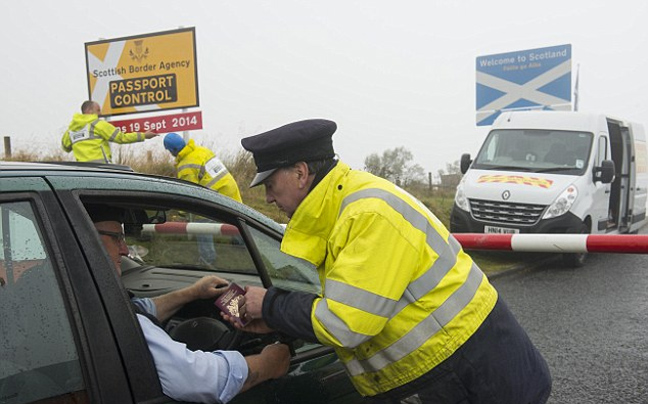 Τι και αν έμειναν μόνο δύο εικοσιτετράωρα από το κρίσιμο δημοψήφισμα για την ανεξαρτησία της Σκωτίας. Στα σύνορα έχει ήδη αρχίσει ο… έλεγχος διαβατηρίων.