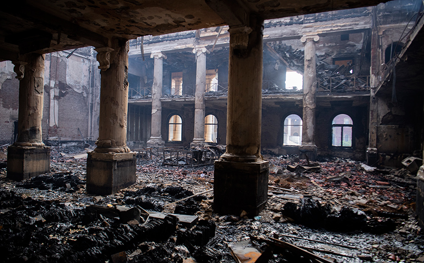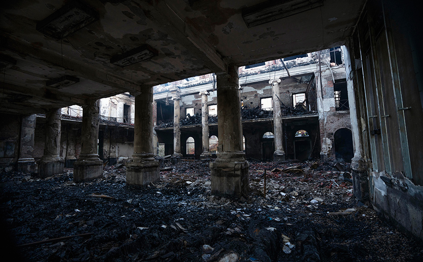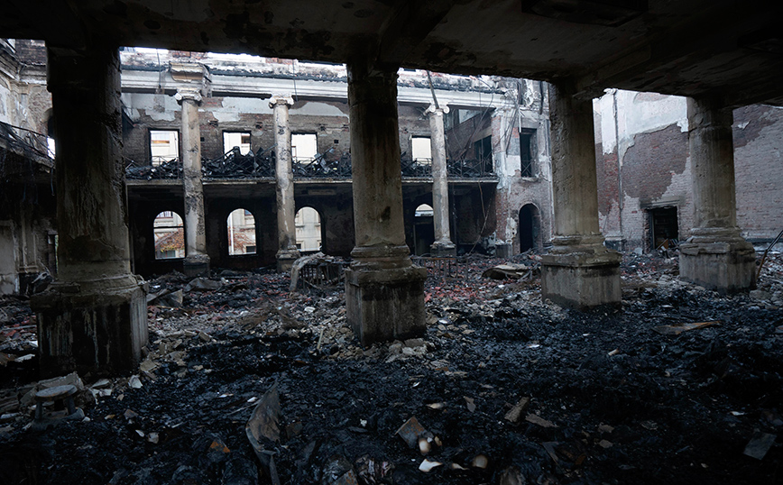 Φωτογραφίες που συνοδεύουν το μήνυμα δείχνουν φλόγες και πυκνό καπνό να βγαίνουν από τη στέγη και τα παράθυρα του κτιρίου.