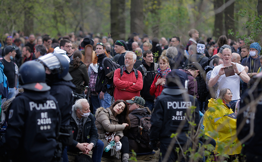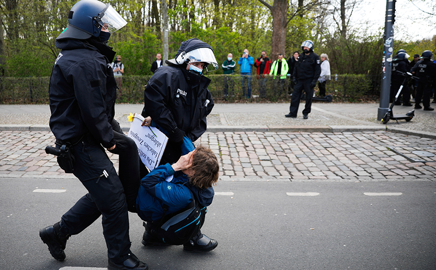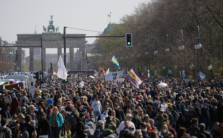 Χιλιάδες διαδηλωτές αρνητές του κορονοϊού, περίπου 8.000 τον αριθμό, βρέθηκαν σήμερα Τετάρτη (21/4) έξω από την Bundestag στο Βερολίνο, ενώ βρισκόταν σε εξέλιξη η συζήτηση και η ψηφοφορία για έκτακτα μέτρα που αφορούν στην πανδημία.