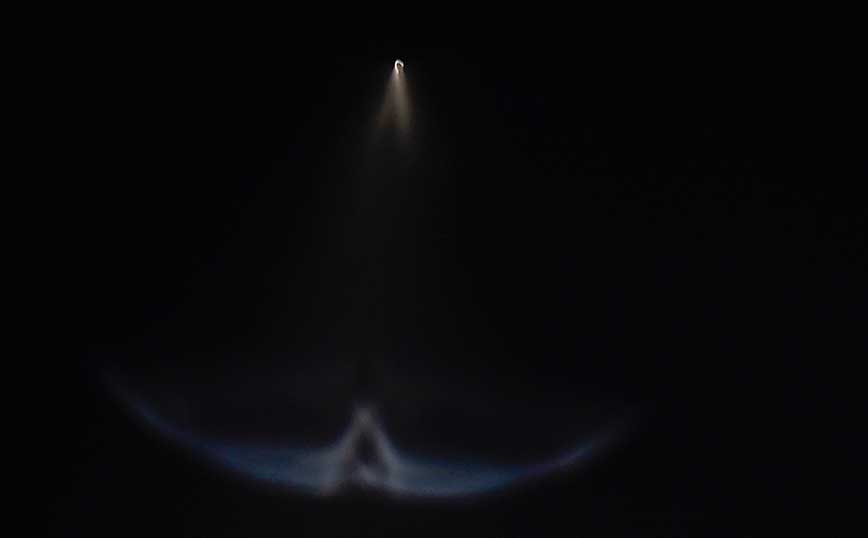 Η απογείωση του πυραύλου Falcon-9 έγινε δεκτή με χειροκροτήματα στην αίθουσα ελέγχου της SpaceX στις 05:49 (12:49 ώρα Ελλάδας).