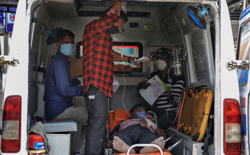 Στο Δελχί, την πλέον πληγείσα πόλη, 20.000 με 25.000 κρούσματα εντοπίζονται καθημερινά. Οι ασθενείς πεθαίνουν στις πόρτες των νοσοκομείων αναμένοντας την εισαγωγή τους. Πεθαίνουν και μέσα στα νοσοκομεία λόγω έλλειψης οξυγόνου.