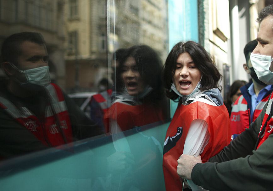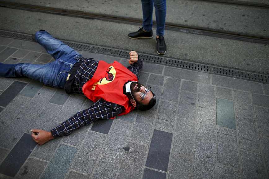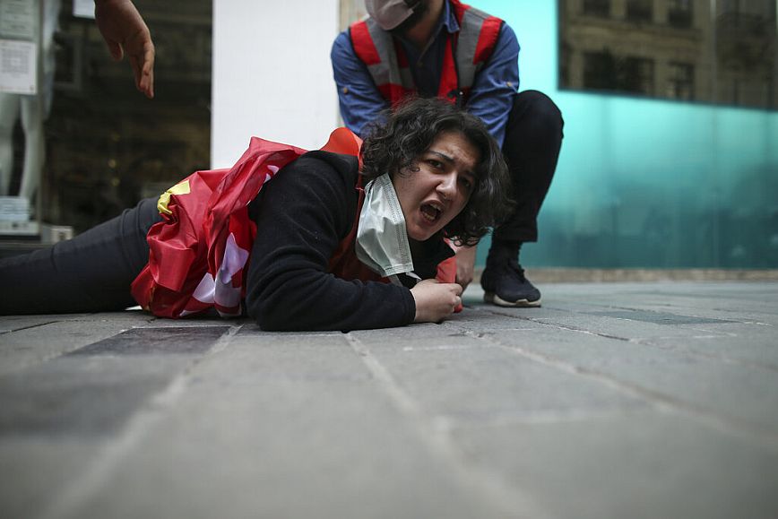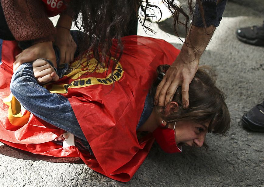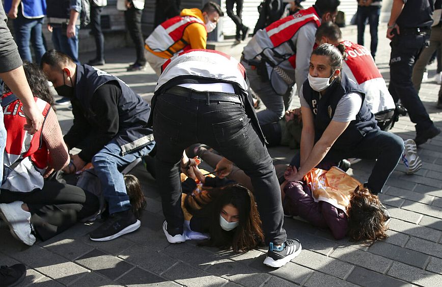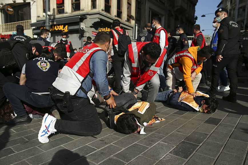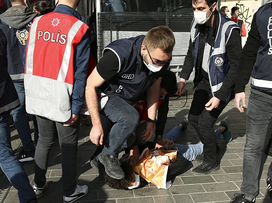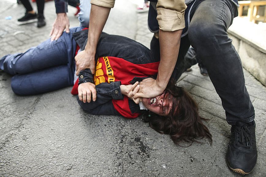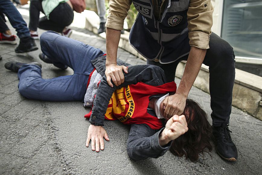 Οι ειδικές αστυνομικές δυνάμεις, αλλά και αστυνομικοί με πολιτική περιβολή, συγκρούστηκαν με ηγέτες εργατικών συνδικάτων, αλλά και άλλους διαδηλωτές, πετώντας μερικούς από αυτούς στο έδαφος, πριν τη σύλληψη δεκάδων διαδηλωτών κοντά στην πλατεία Ταξίμ της Κωνσταντινούπολης, όπως έγινε γνωστό από βίντεο και φωτογραφίες που μετέδωσε το Reuters.