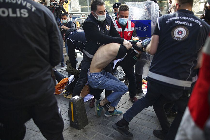 Η τουρκική αστυνομία συνέλαβε 212 διαδηλωτές, μετά την πρόκληση συμπλοκών σε διαδηλώσεις για το σημερινό εορτασμό της Εργατικής Πρωτομαγιάς, εξαιτίας της απαγόρευσης κυκλοφορίας για τον περιορισμό της εξάπλωσης της COVID-19, σύμφωνα με το γραφείο του κυβερνήτη της Κωνσταντινούπολης, αλλά και αυτοπτών μαρτύρων του Reuters.