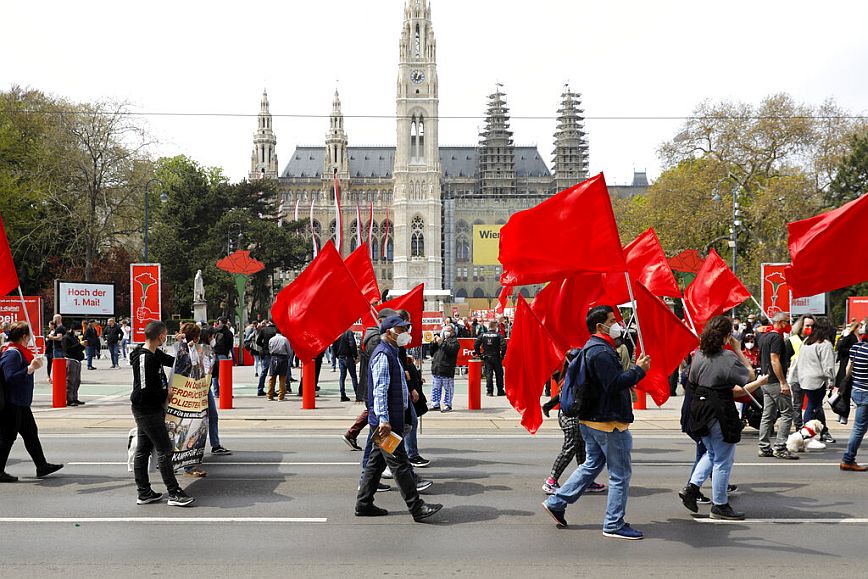 Μία τελείως ασυνήθιστη εικόνα, για δεύτερη φορά εδώ και πάνω από εκατό χρόνια, ανήμερα της Πρωτομαγιάς, παρουσίαζε σήμερα, 1η Μαΐου του 2021, η άδεια από ανθρώπους, λόγω κορονοϊού, τεράστια πλατεία του Δημαρχείου της Βιέννης, που τις άλλες χρονιές, αυτή την ημέρα, συγκέντρωνε χιλιάδες κόσμου για να διατρανώσουν την πίστη τους στον αγώνα για τα δικαιώματα των εργαζομένων.