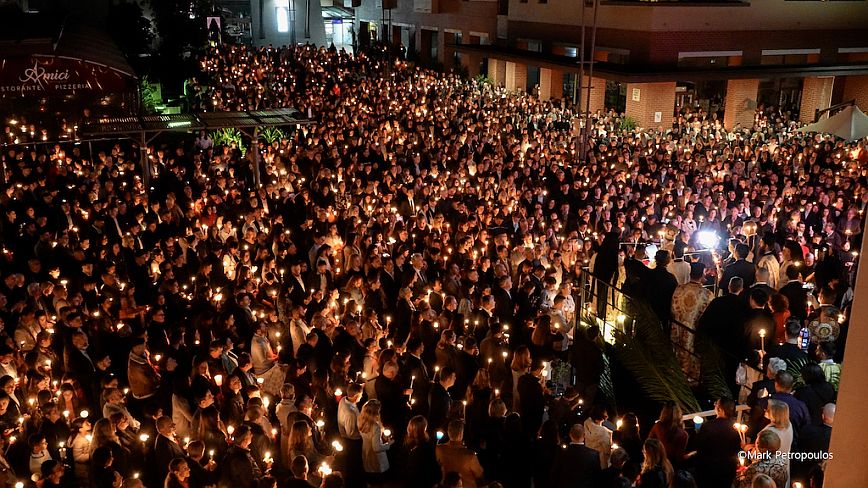 Εντυπωσιακή ήταν η προσέλευση των χιλιάδων πιστών στον Ι. Ναό Αναστάσεως του Χριστού, στο προάστιο Kogarah του Σύδνεϋ, όπου της Ακολουθίας της Αναστάσεως και της πανηγυρικής Θείας Λειτουργίας προεξήρχε ο Σεβασμιώτατος Αρχιεπίσκοπος Αυστραλίας κ.κ. Μακάριος, πλαισιούμενος από τους Θεοφιλεστάτους Επισκόπους Μιλητουπόλεως κ. Ιάκωβο και Μελόης κ. Αιμιλιανό.