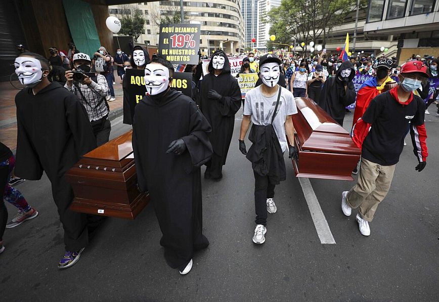 Τουλάχιστον 17 άνθρωποι σκοτώθηκαν και περισσότεροι από 800 τραυματίστηκαν στην Κολομβία κατά τις διαδηλώσεις των τελευταίων πέντε ημερών εναντίον ενός σχεδίου φορολογικής μεταρρύθμισης που προωθούσε η κυβέρνηση του συντηρητικού προέδρου Ιβάν Ντούκε.
