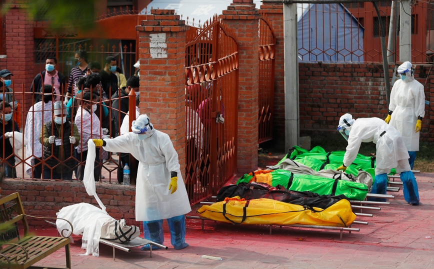 Χθες Κυριακή το Νεπάλ ανέφερε ημερήσια αύξηση των κρουσμάτων κατά 8.777, 30 φορές περισσότερα από τον αριθμό που είχε καταγραφεί έναν μήνα νωρίτερα, δηλαδή στις 9 Απριλίου. Σύμφωνα με κυβερνητικά στοιχεία, ο συνολικός αριθμός των κρουσμάτων στη χώρα ανέρχεται σε 394.667, ενώ εκείνος των νεκρών σε 3.720.