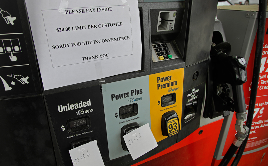 Στα περίχωρα των πόλεων Αλτάντα, Ράλεϊ και Σάρλοτ –στις πολιτείες της Βόρειας Καρολίνας και της Τζόρτζια– περισσότερο από το 30% των βενζινάδικων δεν διέθεταν πια καύσιμα χθες Τρίτη το βράδυ, σύμφωνα με τον ιστότοπο GasBuddy. Στη Βόρεια Καρολίνα περισσότερο από το 10% των βενζινάδικων δεν είχαν καθόλου καύσιμα, ανέφερε η ίδια πηγή.