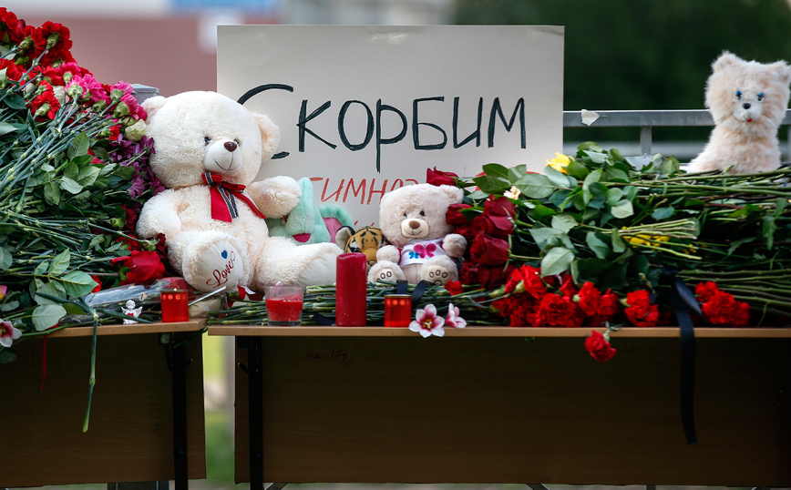 Λουλούδια και παιχνίδια άφηναν σήμερα στο σχολείο Ν175 της πόλης Καζάν κάτοικοι της, αποτίοντας κατ’ αυτόν τρόπο φόρο τιμής, στους επτά μαθητές και τους δύο δασκάλους που έχασαν χθες τη ζωή τους, όταν ο 19χρονος φοιτητής Ιλνάζ Γκαλιαβίγεφ άνοιξε πυρ μέσα στο σχολείο.