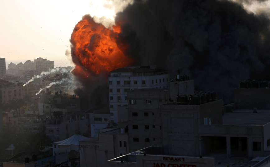 Η ισραηλινή πολεμική αεροπορία κονιορτοποίησε δεκαώροφο κτίριο που φιλοξενούσε τα γραφεία του τηλεοπτικού σταθμού Αλ Άκσα, που δημιουργήθηκε πριν από μερικά χρόνια από τη Χαμάς.