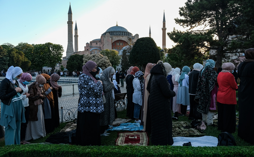 Χιλιάδες μουσουλμάνοι στην Κωνσταντινούπολη προσευχήθηκαν σήμερα Πέμπτη (13/5) για το Μπαϊράμι στην Αγία Σοφιά για πρώτη φορά μετά από δεκαετίες.