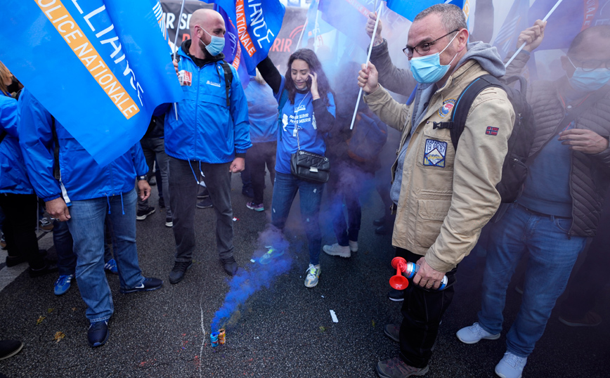 Χιλιάδες Γάλλοι αστυνομικοί διαδήλωσαν έξω από τη γαλλική Εθνοσυνέλευση σήμερα ζητώντας από την κυβέρνηση να λάβει δραστικά μέτρα κατά της βίας σε βάρος των δυνάμεων ασφαλείας και την επιβολή αυστηρότερων ποινών για τους δράστες.