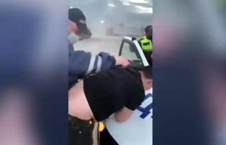 «Του έριξες, του έριξες, βλάκα», φωνάζει ο άνδρας που καταγράφει το πρόσωπο του φίλου του και το αίμα που ρέει πάνω στο περιπολικό.