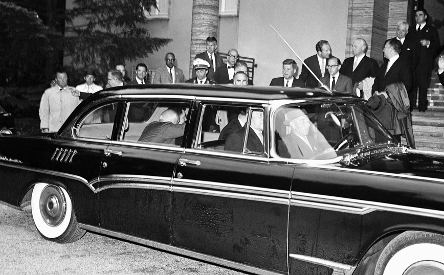Αεροπορικά ο Τζον Κένεντι, συνοδευόμενος από τη σύζυγό του Τζάκι που συγκέντρωνε τους φακούς των διεθνών φωτοειδησεογράφων της εποχής, με το τρένο και έπειτα από ένα ταξίδι τεσσάρων ημερών από τη Μόσχα με ενδιάμεσους σταθμούς στο Κίεβο και στην Μπρατισλάβα, ο Νικίτα Χρουστσόφ έχοντας δίπλα του τη Νίνα Κρούτσεβα.