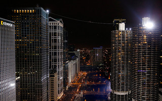 Ο 35χονος ακροβάτης πραγματοποίησε το ριψοκίνδυνο αυτό εγχείρημα το βράδυ της Κυριακής τη στιγμή που πλήθος κόσμου παρακολουθούσε το εγχείρημα στους πύργους «Marina City», στο Σικάγο με κομμένη ανάσα. Θέλετε κι άλλο; Ο Wallenda δεν χρησιμοποίησε δίχτυ προστασίας ή κάποιο λουρί.