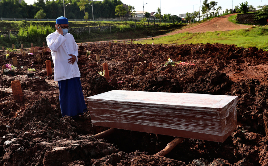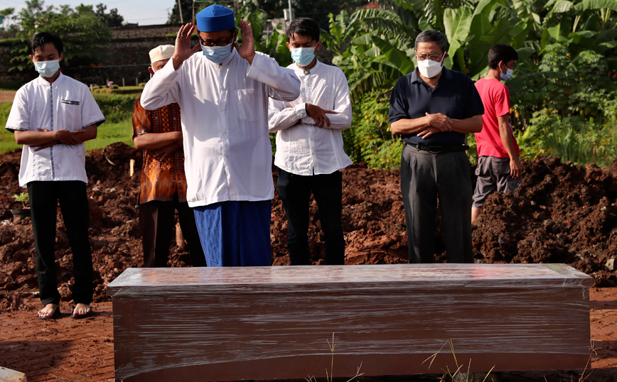 Ήταν μια από τις 143 ταφές στη Τζακάρτα εκείνη την ημέρα –οι περισσότερες από τότε που ξεκίνησε η πανδημία– σύμφωνα με τον Ιβάν Νουρτσάχο στην υπηρεσία πάρκων της Τζακάρτα, που διαχειρίζεται τα κοιμητήρια και τις ταφές.