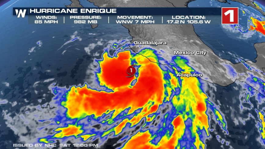 Ο Ενρίκε, που βρίσκεται αυτή τη στιγμή 346 χλμ. νότια από το Κάμπο Κοριέντες στο Μεξικό, αναμένεται να κινηθεί παράλληλα προς τις νοτιοδυτικές μεξικανικές ακτές, εκτίμησε το NHC.