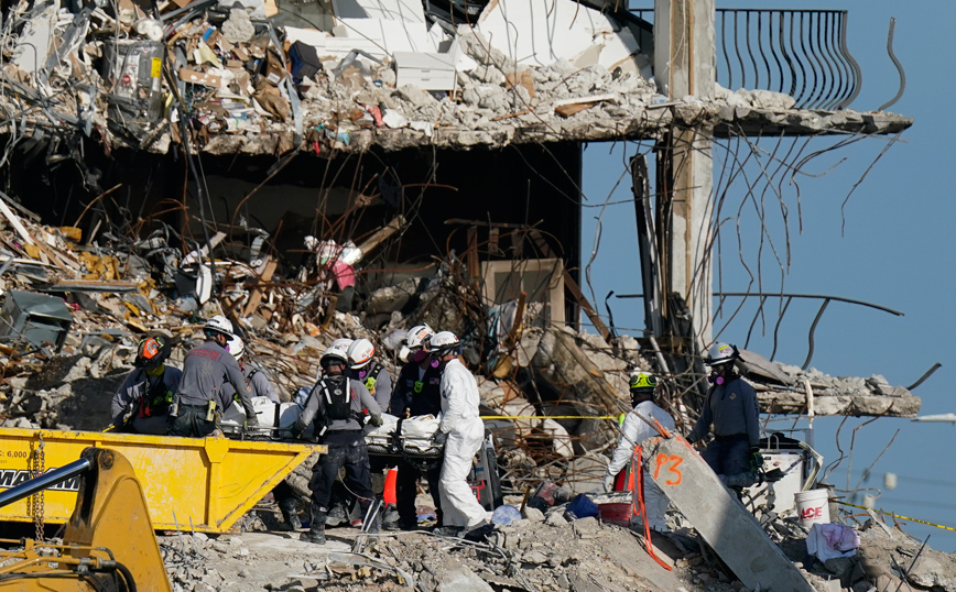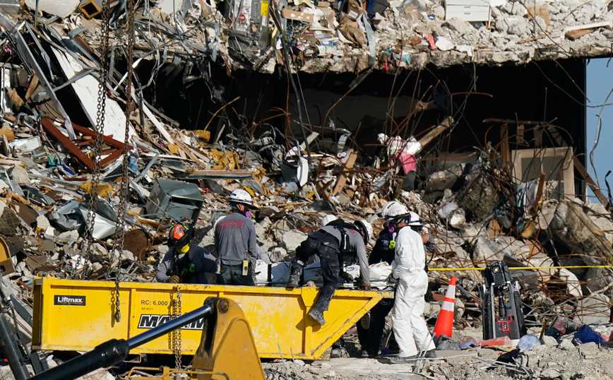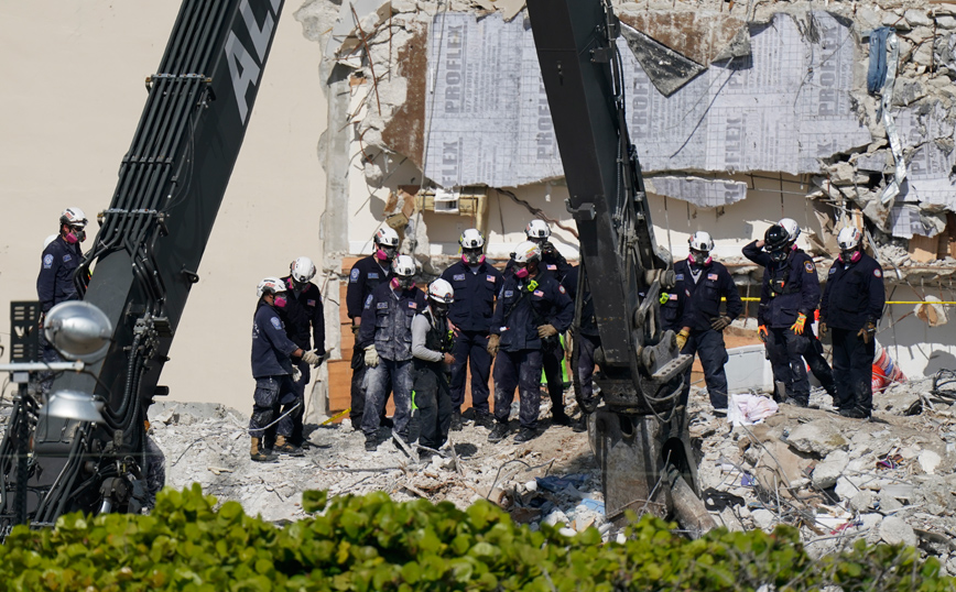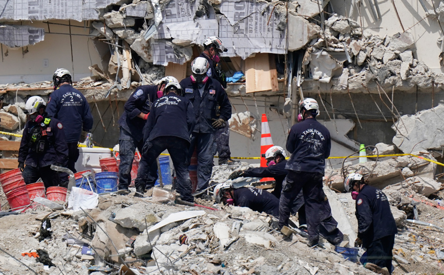 Η επίπονη επιχείρηση έρευνας για τον εντοπισμό των θυμάτων στα συντρίμμια, η οποία ανεστάλη το μεγαλύτερο μέρος της χθεσινής ημέρας λόγω ανησυχιών για την ασφάλεια, συνεχίζεται σήμερα, με μεγαλύτερη προσοχή και με το βλέμμα στραμμένο και σε έναν κυκλώνα που θα μπορούσε να πλήξει τη Φλόριντα τις επόμενες ημέρες.