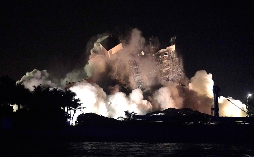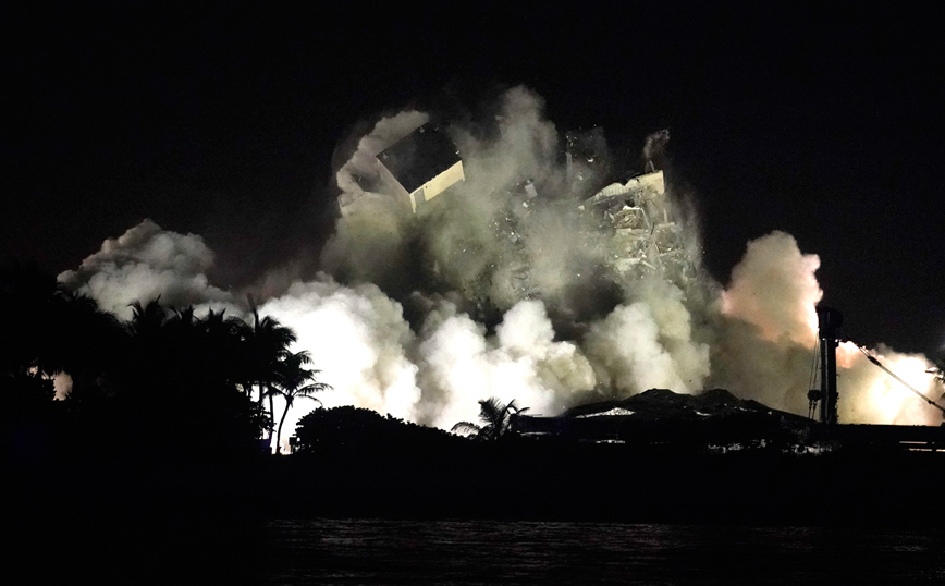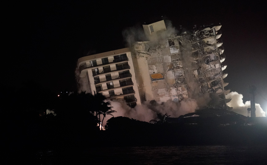 Σαν να είναι σκηνή από κάποια ταινία στο Χόλιγουντ μοιάζουν οι φωτογραφίες που έρχονται από την ελεγχόμενη έκρηξη που έγινε στο τμήμα της 12όροφης πολυκατοικίας που είχε απομείνει όρθιο μετά την κατάρρευση στο Σέρφσαϊντ, κοντά στο Μαϊάμι. Η έκρηξη έγινε καθώς πλησιάζει τη Φλόριντα η τροπική καταιγίδα Έλσα, η οποία αναμένεται να αρχίσει να πλήττει την πολιτεία αύριο Τρίτη 6 Ιουλίου.