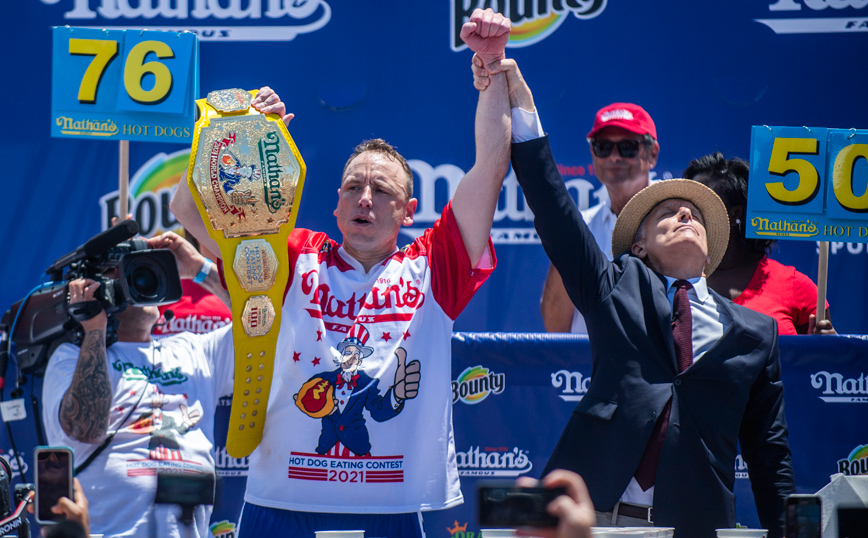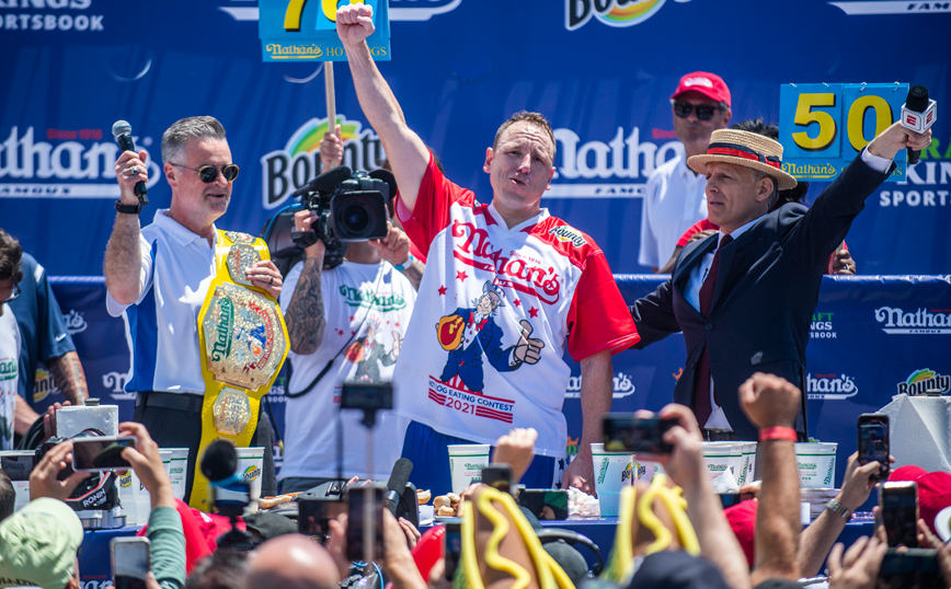 Ο Τζόι Τσέσνατ, επονομαζόμενος «Τζόουζ» (τα σαγόνια), κέρδισε για 14η φορά τον παραδοσιακό διεθνή διαγωνισμό κατανάλωσης χοτ ντογκ του Nathan’s, ο οποίος διοργανώνεται ετησίως την 4η Ιουλίου με αφορμή την εθνική γιορτή στις ΗΠΑ.