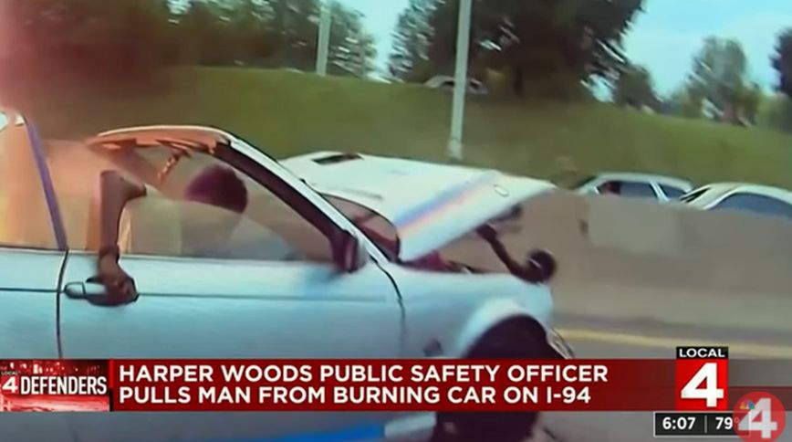 Στο βίντεο που καταγράφηκε στο Μίσιγκαν των ΗΠΑ την περασμένη Κυριακή φαίνεται ο αστυνομικός Luke Pauly να τρέχει προς το φλεγόμενο αυτοκίνητο και να βγάζει τον άντρα που βρίσκεται μέσα σε αυτό. Ένα διαφορετικό βίντεο που καταγράφηκε από την κάμερα στη στολή του αστυνομικού καταγράφει επίσης τα δευτερόλεπτα της διάσωσης.