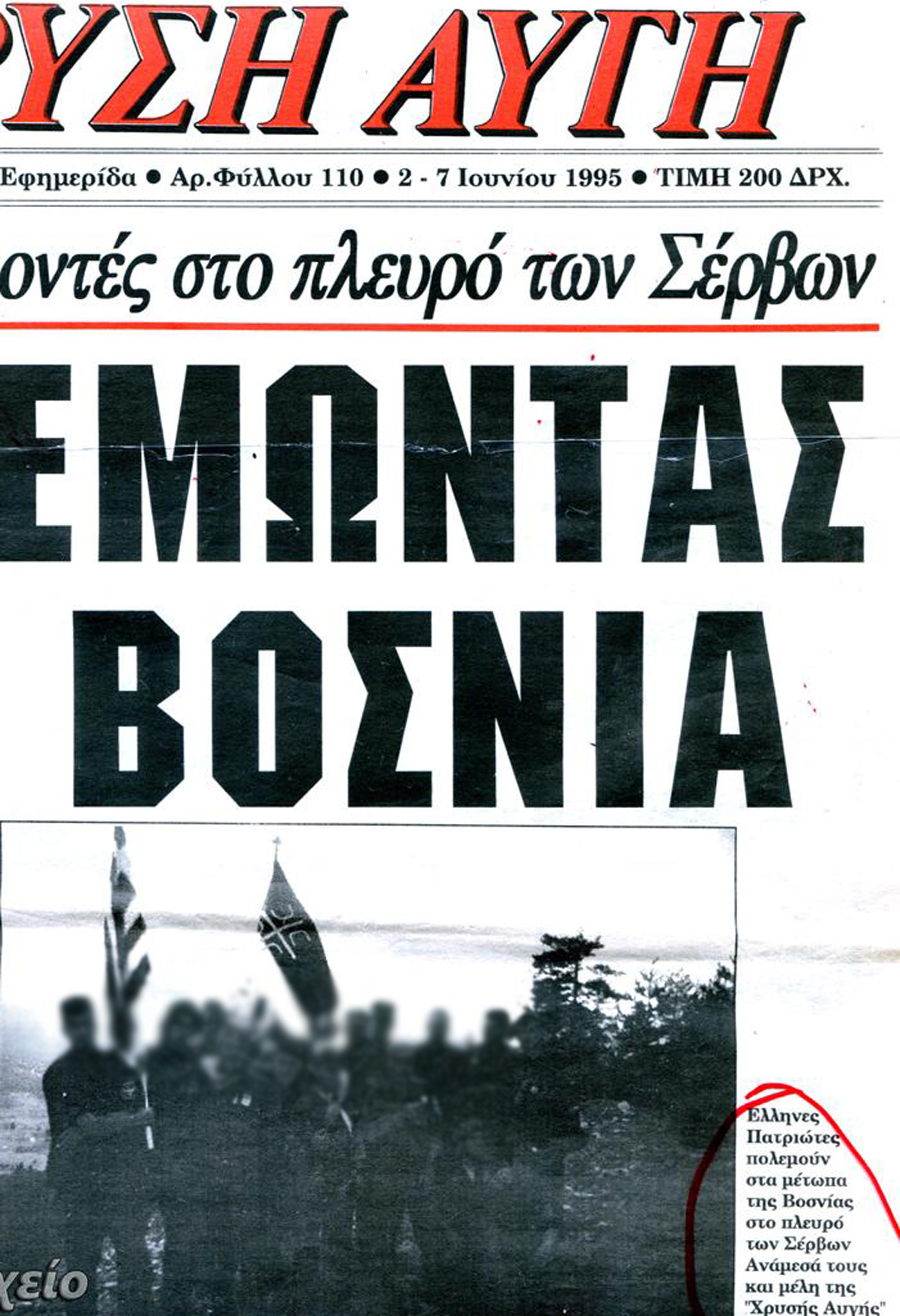 Όσο περνούσε ο καιρός, ωστόσο, και η Ευρώπη βρισκόταν αντιμέτωπη με μια δίχως κανένα έλεος ανθρωποσφαγή, τόσο τα στόματα άνοιγαν. Οι «πατριώτες» που συμμετείχαν στην κατάληψη της Σρεμπρένιτσα ήταν εθνικιστές παραστρατιωτικοί και μέλη της εγκληματικής οργάνωσης της Χρυσής Αυγής η οποία μέσα από τα προπαγανδιστικά της έντυπα υπερηφανευόταν για τη συμμετοχή τους στον πόλεμο της Γιουγκοσλαβίας.