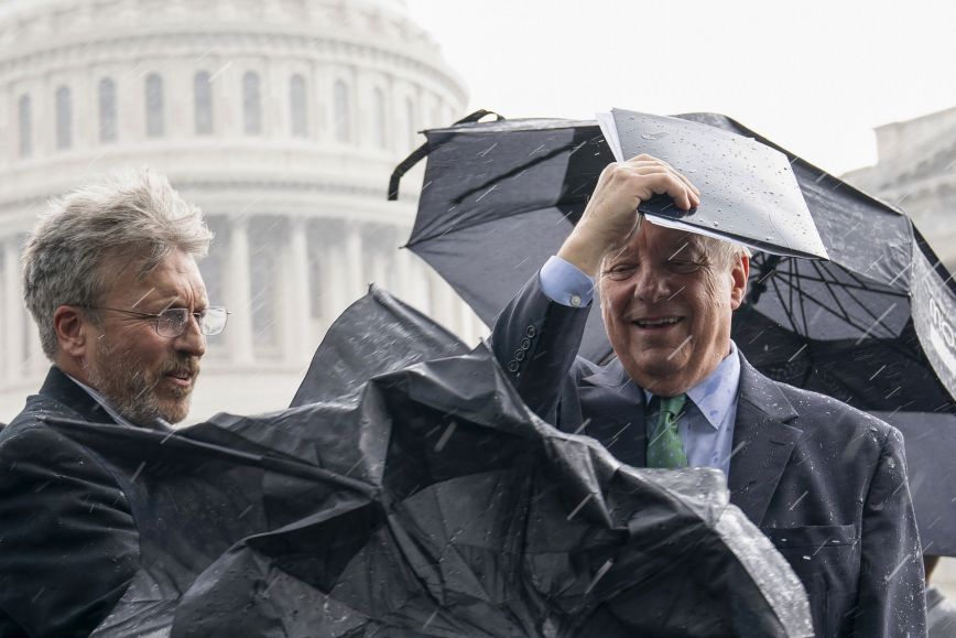 Τα ακραία καιρικά φαινόμενα δεν καταλαβαίνουν από πολιτικά αξιώματα και ομιλίες. Έτσι ο Αμερικανός γερουσιαστής Ντικ Ντούρμπιν προσπαθεί να προστατεύσει τον εαυτό του από ένα ξαφνικό μπουρίνι που έπληξε την Ουάσιγκτον.