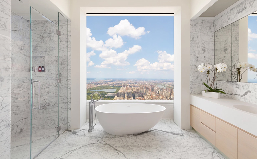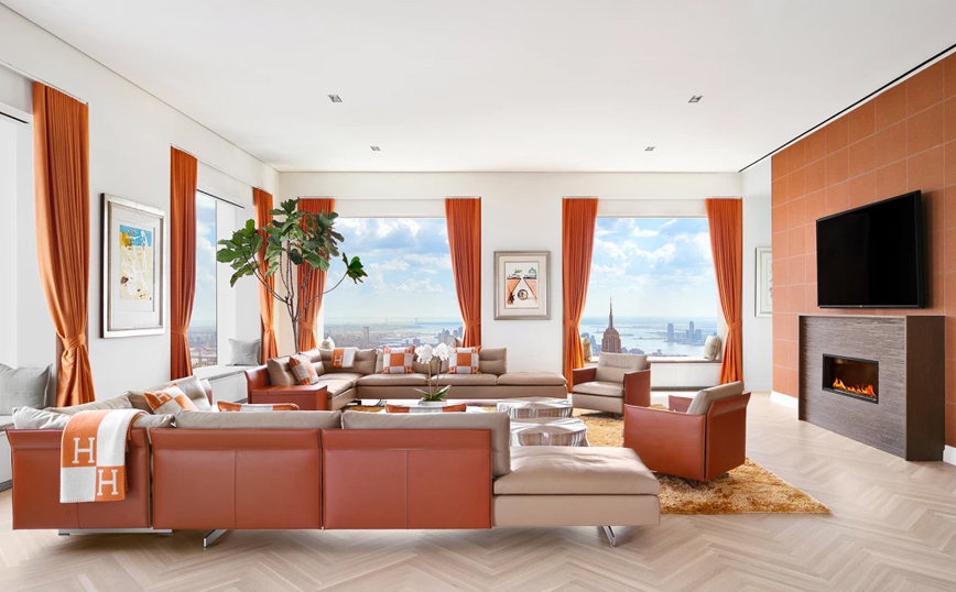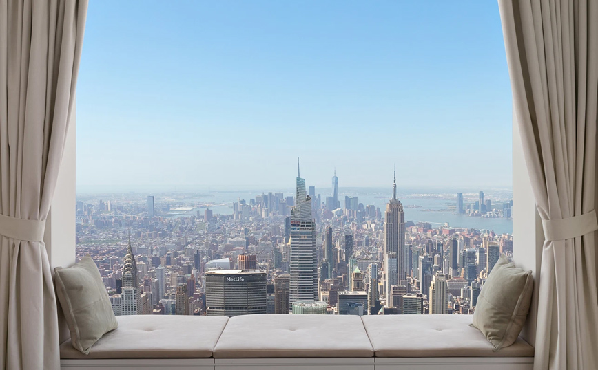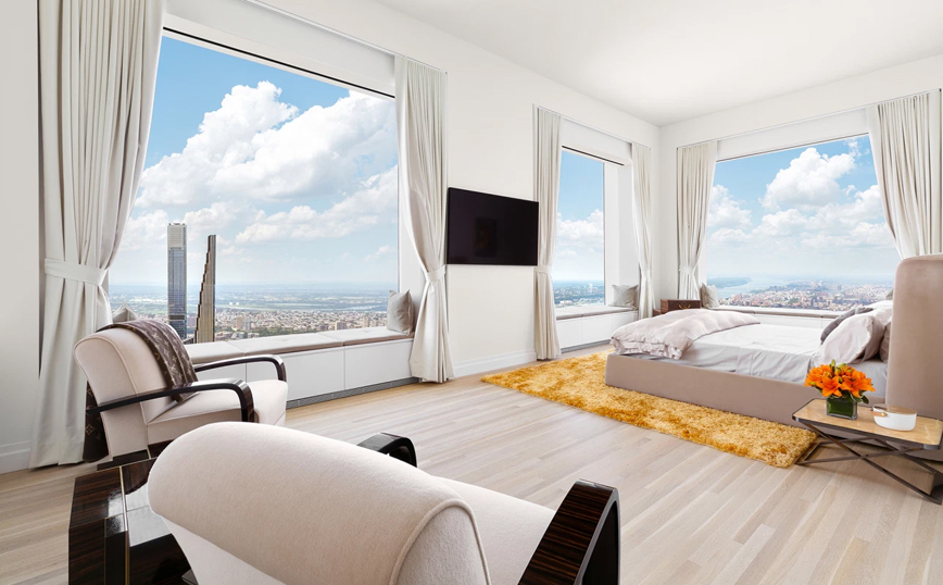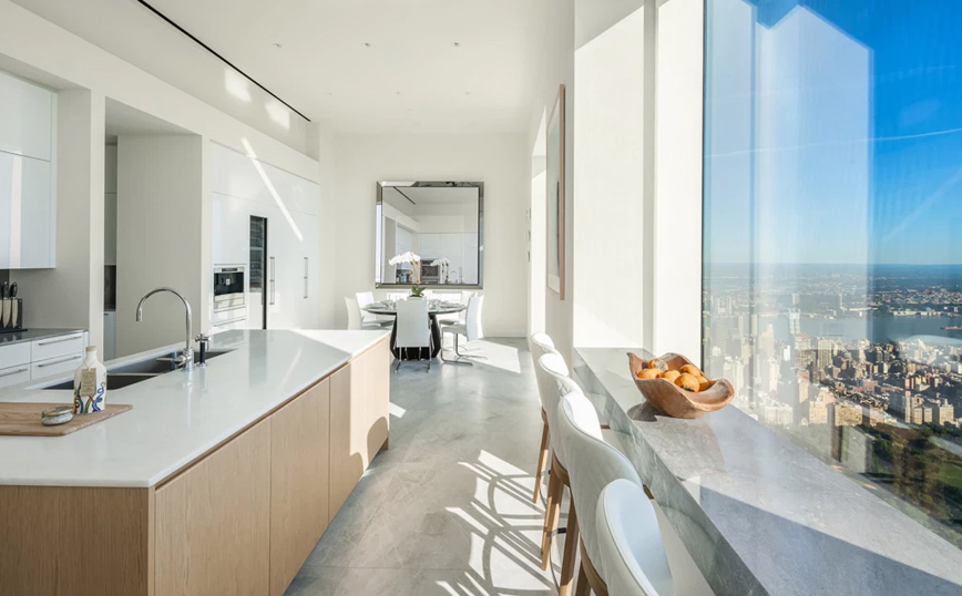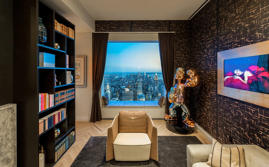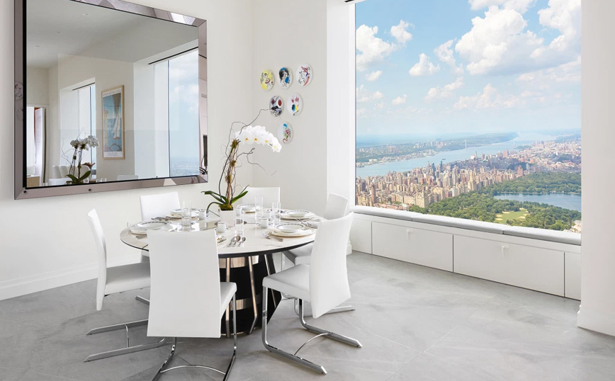 Το διαμέρισμα βρίσκεται στον 96ο όροφο του ουρανοξύστη 432 Park Avenue και έχει 6 υπνοδωμάτια και 8 μπάνια.