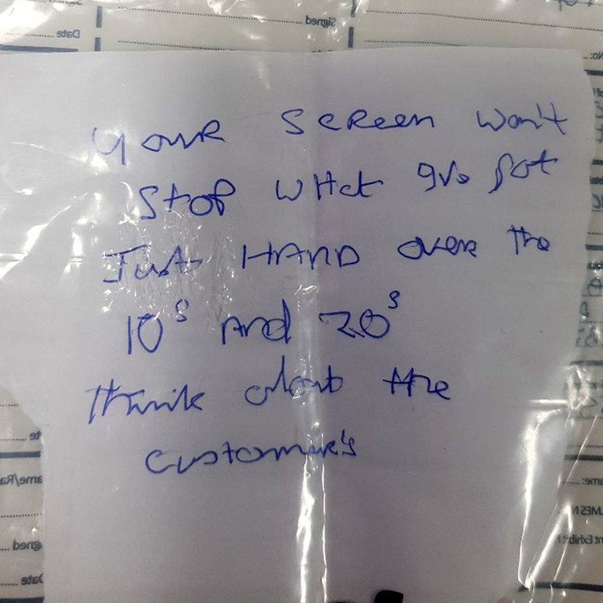 Βλέπετε ο ταμίας δεν μπορούσε να καταλάβει τι έγραφε το χειρόγραφο ραβασάκι που του έδωσε ο κάπως ιδιαίτερος πελάτης.