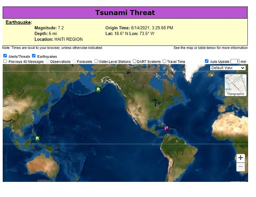 Δύο διαδοχικές σεισμικές δονήσεις 7,2 βαθμών της κλίμακας Ρίχτερ η καθεμία, με διαφορά ενός λεπτού, σημειώθηκαν στη δυτική Αϊτή νωρίτερα σήμερα.