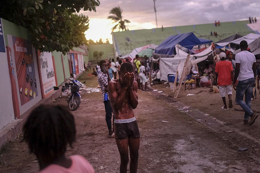 Καθώς σωστικά συνεργεία συνέχιζαν να αναζητούν επιζήσαντες στα συντρίμμια κτιρίων που κατέρρευσαν από τον σεισμό 7,2 βαθμών, τροπική καταιγίδα έφερε σφοδρές βροχοπτώσεις στη νότια ακτογραμμή της Αϊτής με αποτέλεσμα να σημειωθούν πλημμύρες που επιδεινώνουν την ανθρωπιστική κρίση.