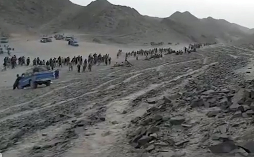Όπως φαίνεται στο βίντεο και τις φωτογραφίες που δημοσιεύει η Daily Mail, χιλιάδες άνθρωποι σχηματίζουν ουρές διασχίζοντας χιλιόμετρα στην έρημο, εκεί όπου συναντώνται τα σύνορα του Αφγανιστάν, του Πακιστάν και του Ιράν.