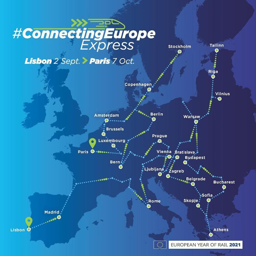 Το Connecting Europe Express, ένα εκθεσιακό τρένο θα ταξιδέψει σε 26 χώρες της Ευρώπης, συμπεριλαμβανομένης της Ελλάδας μέσα σε 35 ημέρες. Πρόκειται για μία πρωτοβουλία της Ευρωπαϊκής Επιτροπής στο πλαίσιο της ανακήρυξης του 2021 ως Ευρωπαϊκού Έτους Σιδηροδρόμου.
