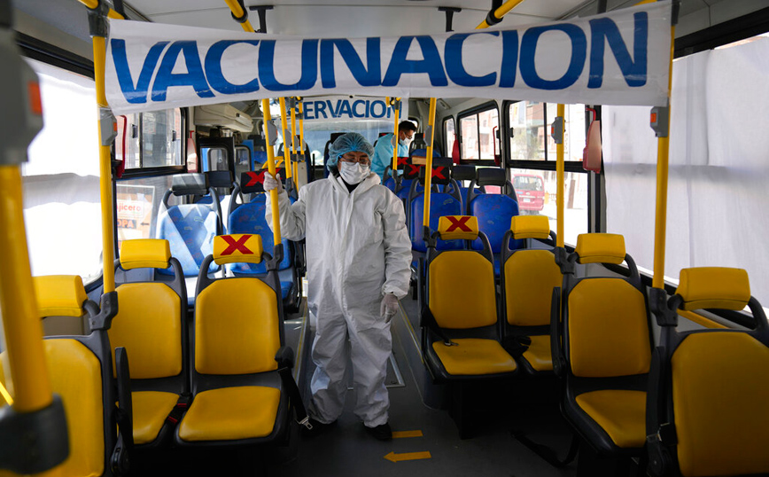 Στη Βολιβία δεν χάνουν ούτε λεπτό. Εμβολιασμοί γίνονται και μέσα στα λεωφορεία καθ’ οδόν.