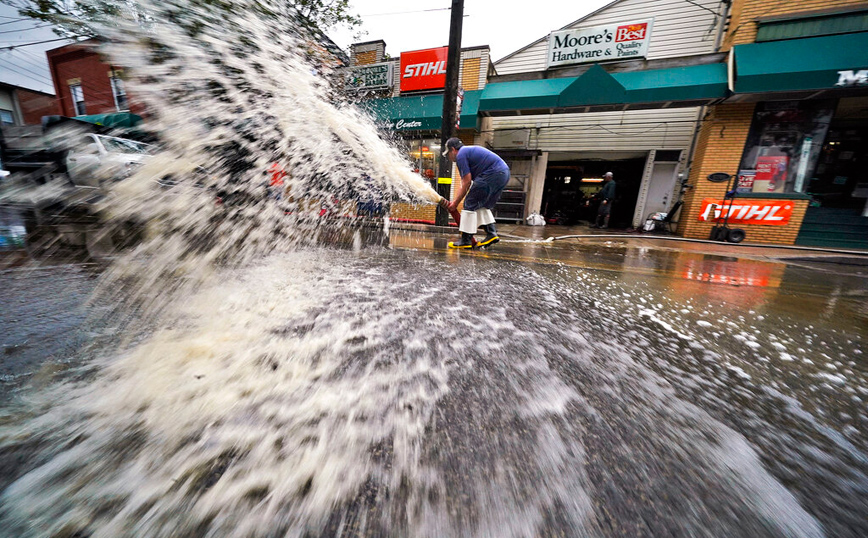 Δρόμοι, λεωφόροι, οδοί ταχείας κυκλοφορίας μεταμορφώθηκαν σε χειμάρρους ενώ πάνω από 40 άνθρωποι έχασαν τη ζωή τους από το πέρασμα του τυφώνα Άιντα.