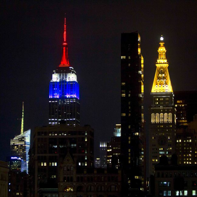 Την αλληλεγγύη του στη Γαλλία εξέφρασε το Empire State Building, «φορώντας» τα χρώματα της σημαίας της χώρας.