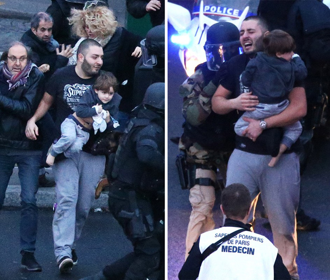 Κάθονται ο ένας πολύ κοντά στον άλλον για να ζεσταθούν, πάνω σε χάρτινες κούτες με τρόφιμα. Είναι οι όμηροι του τζιχαντιστή Αμεντί Κουλιμπαλί, στο εβραϊκό παντοπωλείο Hyper Cacher στο Porte de Vincennes βορειοανατολικά του Παρισιού, οι οποίοι έζησαν συγκλονιστικές στιγμές.