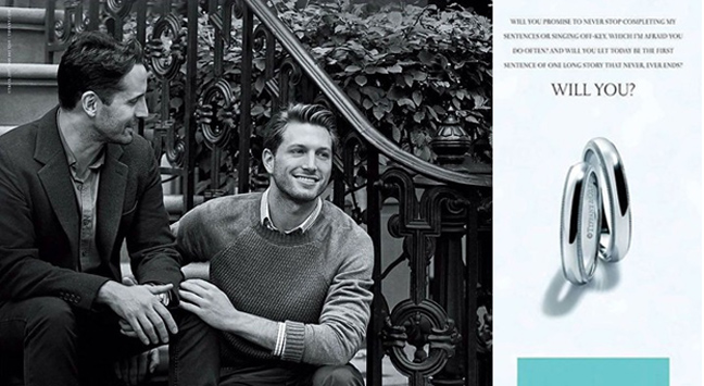 Όπως η διάσημη εταιρεία κοσμημάτων Tiffany που κυκλοφόρησε μια καμπάνια για την προώθηση γαμήλιων βερών για γκέι ζευγάρια.
