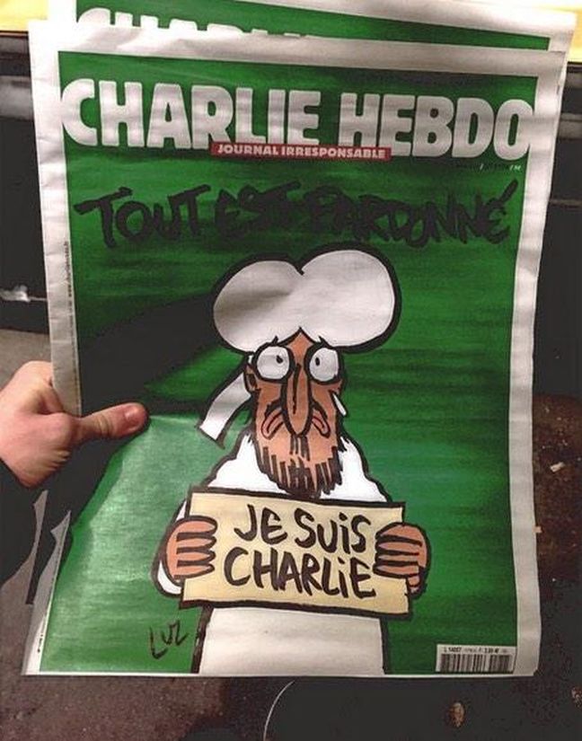 Από την Ευρώπη μέχρι την Αυστραλία, πολυάριθμες εφημερίδες στον κόσμο αναπαρήγαγαν αμέσως αυτό το πρωτοσέλιδο ενός φύλλου το οποίο ετοιμάσθηκε στα γραφεία της αριστερής εφημερίδας Λιμπερασιόν. Πάνω από το σκίτσο του προφήτη σε πράσινο φόντο, το χρώμα του ισλάμ, ο τίτλος «Όλα συγχωρούνται» έρχεται σε αντίθεση με τη δηκτική και ανελέητη στάση που τηρεί συνήθως η εφημερίδα.