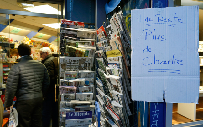 Ούτε ένα αντίτυπο από το νέο φύλλο του σατιρικού περιοδικού Charlie Hebdo δεν έμεινε στα 27.000 σημεία πώλησης σε ολόκληρη τη Γαλλία, όπως ανακοίνωσε η Εθνική Ενωση Διανομέων Τύπου, μετά την αιματηρή επίθεση με τους 12 νεκρούς.