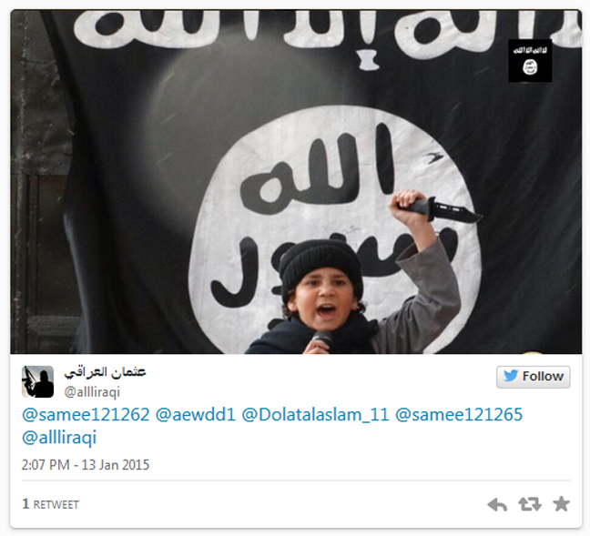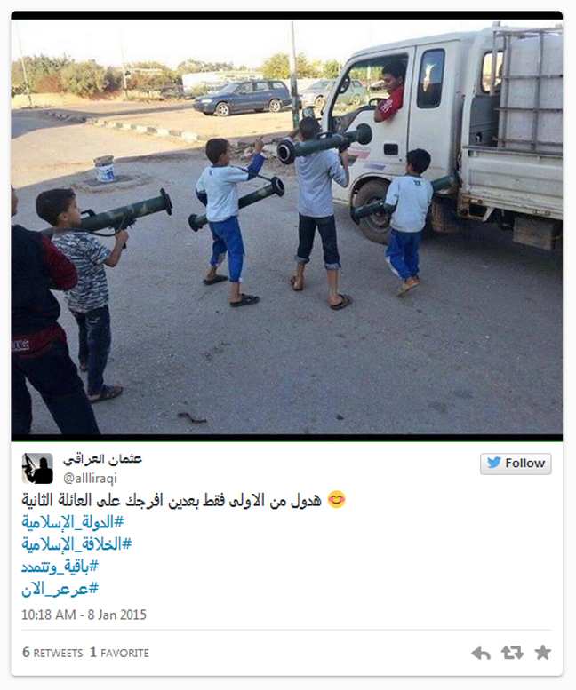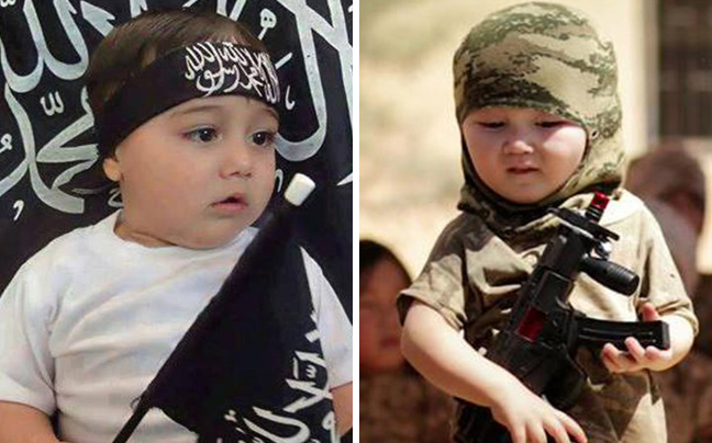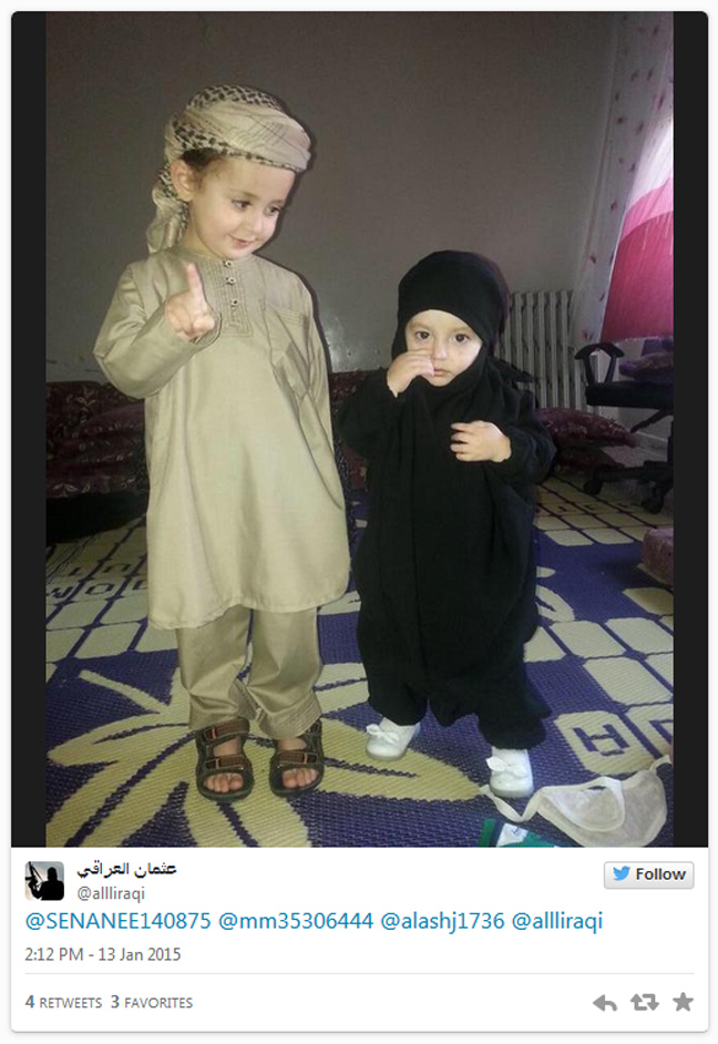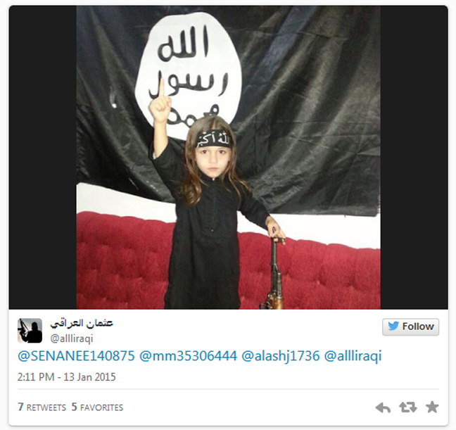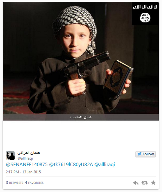 Οι φωτογραφίες ανέβηκαν στα social media, στον λογαριασμό της ISIS στο twitter, στις οποίες ανήλικα παιδιά ποζάρουν ακόμα και με όπλα, με θρησκευτικά σύμβολα και με τη χαρακτηριστική μαύρη σημαία.