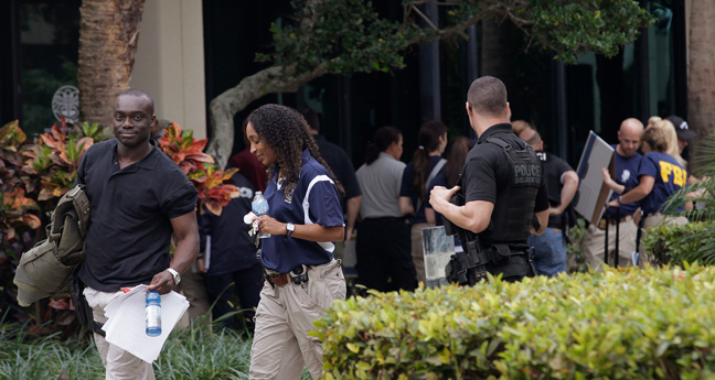 Δεκάδες πράκτορες του FBI, της υπηρεσίας δίωξης οικονομικού εγκλήματος της πολιτείας και άλλων υπηρεσιών επιβολής του νόμου απέκλεισαν τις εισόδους του κτιρίου όπου στεγάζεται η εταιρεία και κατέσχεσαν κούτες με αρχεία, δήλωσε ένας από τους αυτόπτες μάρτυρες.