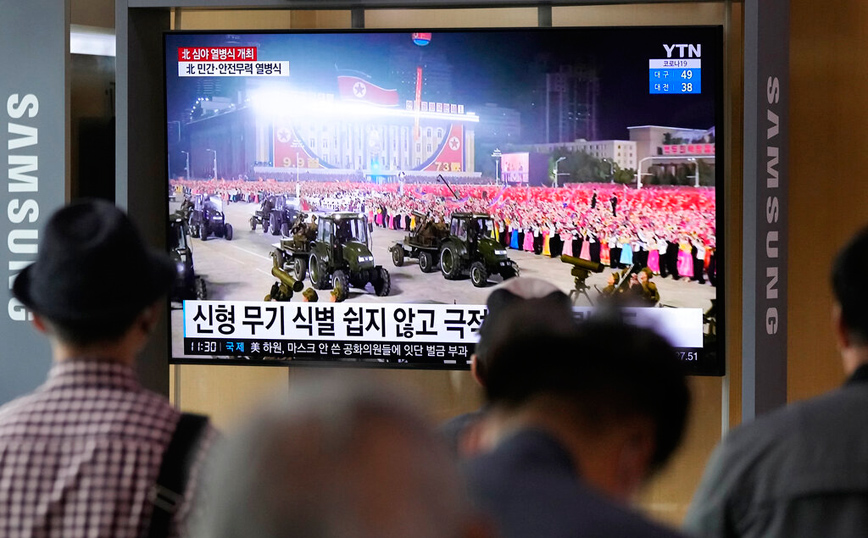 Με στρατιώτες που φορούσαν στολές βιοχημικού πολέμου αλλά χωρίς την παρουσίαση βαλλιστικών πυραύλων πραγματοποιήθηκε στη Βόρεια Κορέα παρέλαση για τον εορτασμό της 73ης επετείου από την ίδρυση του Κομμουνιστικού Κόμματος.