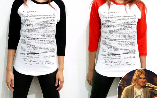 Μια σειρά από μπλουζάκια που έφεραν ως στάμπα, το σημείωμα αυτοκτονίας του Κέρτ Κομπέιν προκάλεσαν θύελλα οργής από τους θαυμαστές των Nirvana.