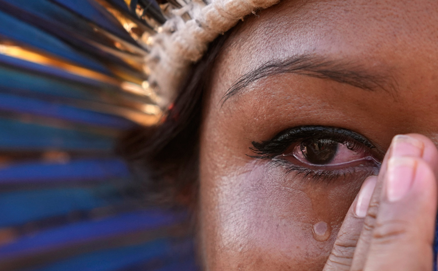 Με εξαφάνιση απειλούνται οι ιθαγενείς στη Βραζιλία από τις πολιτικές του ακροδεξιού προέδρου Μπολσονάρου. Μία ιθαγενής δακρύζει μετά την απόφαση του Ανώτατου δικαστηρίου της Βραζιλίας να αναστείλει προσωρινά την ψήφιση για τον αποχαρακτηρισμό της γης των αυτόχθονων στη χώρα.