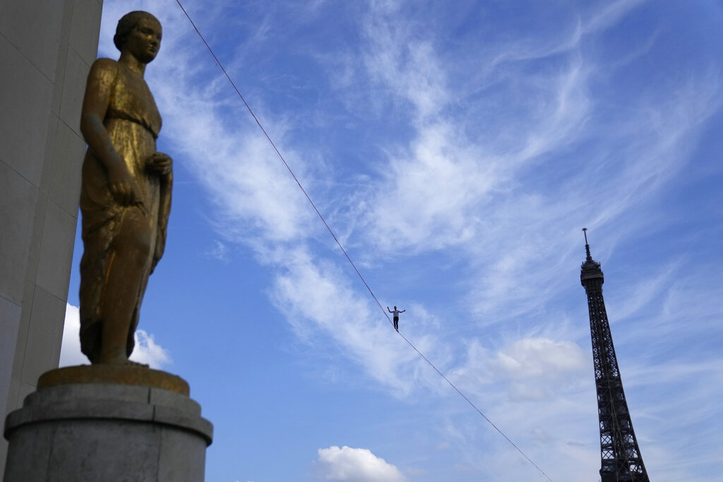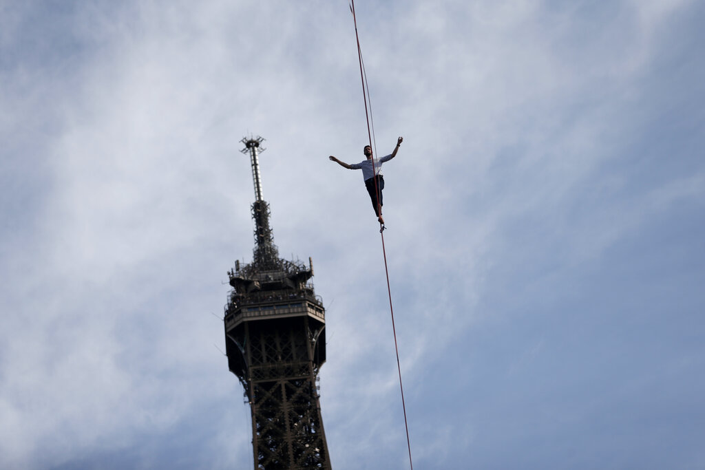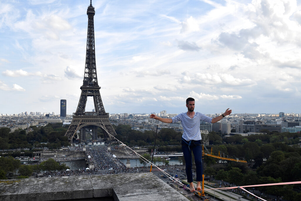 Το θερμό χειροκρότημα του πλήθους και η εκπληκτική θέα σε όλο το Παρίσι ήταν η ανταμοιβή του ισορροπιστή Νατάν Πολέν, ο οποίος κάλυψε μια απόσταση 600 μέτρων περπατώντας πάνω σε έναν ιμάντα, από τον Πύργο του Άιφελ μέχρι την απέναντι όχθη του Σηκουάνα.