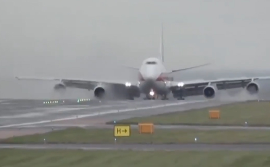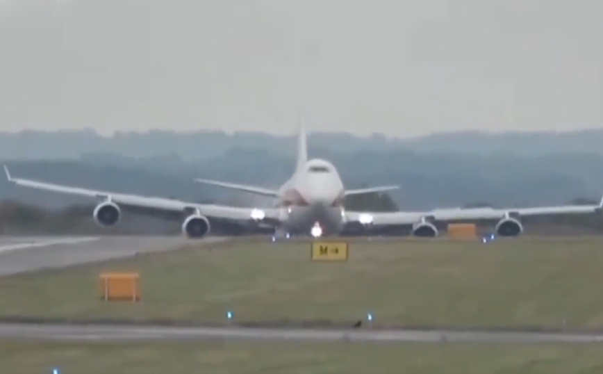 Σύμφωνα με δημοσίευμα της Sun, κανείς δεν τραυματίστηκε όταν το φορτηγό αεροπλάνο 747 που είχε αναχωρήσει νωρίτερα από τη Λειψία της Γερμανίας προσγειώθηκε στον αγγλικό αερολιμένα με έναν εκκωφαντικό κρότο. Στη φωτογραφία είναι εμφανείς οι φλόγες που πετάγονται από έναν από τους κινητήρες του αεροσκάφους, καθώς και οι καπνοί που αρχίζουν να το τυλίγουν.